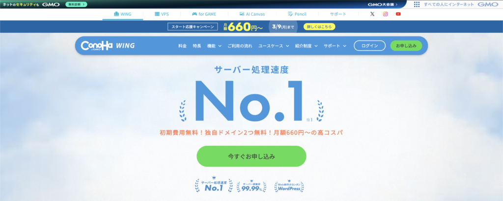 手順1:ConoHa WINGの公式サイトへアクセス