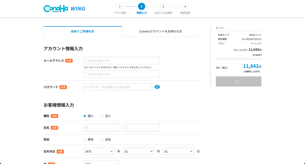 手順4:お客様情報と決済方法の入力