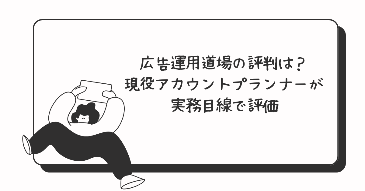 本記事では、新卒入社したベンチャーでのテレアポ・広告運用から始まり、現在は大手WEB広告代理店のアカウントプランナーとしてクライアントや外部パートナーと向き合っている私が、「プロに運用を依頼する側の視点」で、広告運用道場のカリキュラムをフラットに評価します。